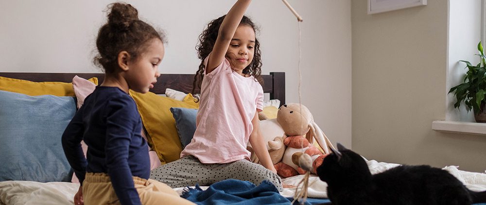 Οι γάτες, ιδίως όταν είναι μικρές σε ηλικία είναι πολύ παιχνιδιάρες, ιδίως τα μικρά γατάκια θα ακολουθήσουν τα παιχνίδια των παιδιών, γεγονός που τα κάνει μία ευχάριστη παρέα. Τα παιδιά μαθαίνουν εύκολα να συνυπάρχουν αλλά και να δένονται με μία γάτα είτε μέσα από τα παιχνίδια, είτε μέσα από τη συντροφιά, αφού πολλές φορές θα τα δείτε να αποκοιμιούνται και μαζί, είτε μέσα από τον ιδιαίτερο τρόπο που επικοινωνεί μαζί τους αλλά και με όλους μας.